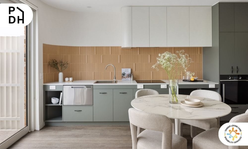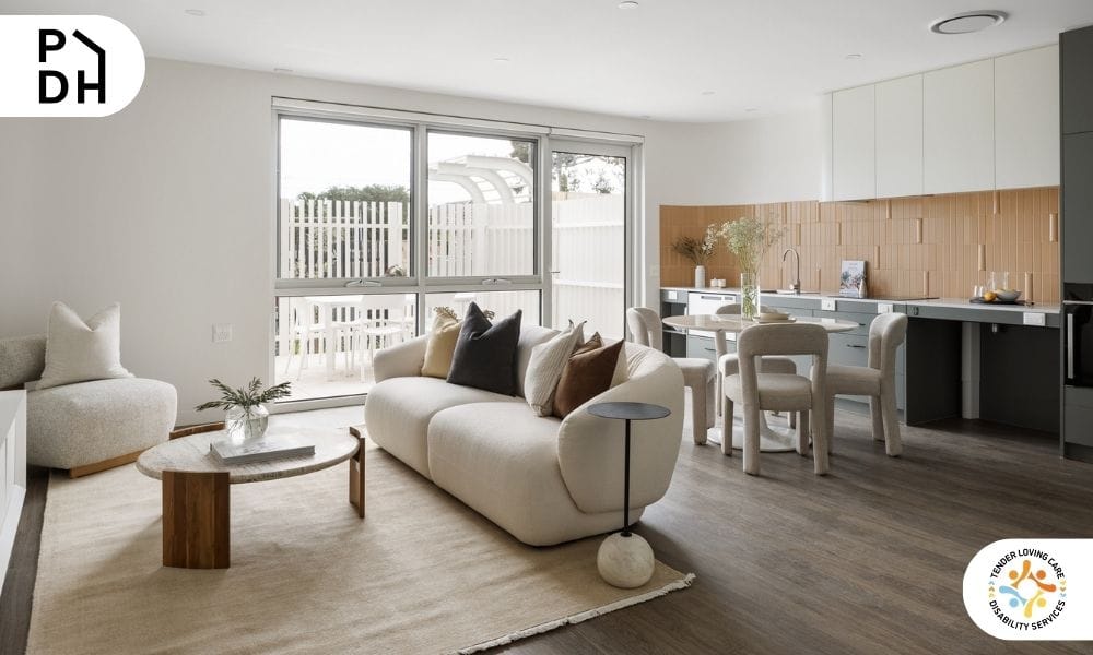 Each apartment includes a private bedroom with ensuite accessible bathroom, open-plan living and dining areas, and modern finishes throughout. A dedicated On-Site Overnight Assistance (OOA) room is incorporated into the layout, with flexibility for modifications if required.