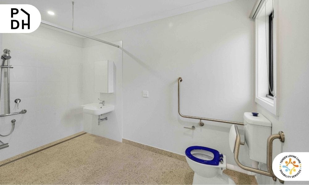 The property includes private bedrooms with accessible ensuites, open living areas, and a dedicated On-Site Overnight Assistance (OOA) room to support participant needs.