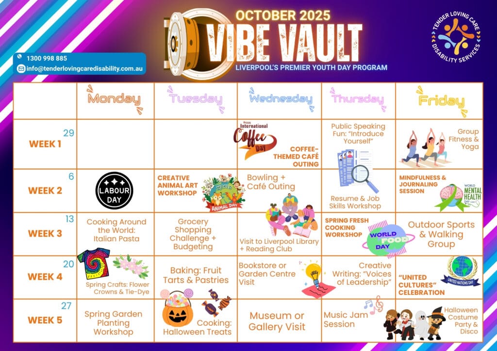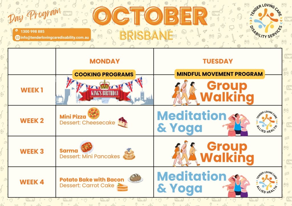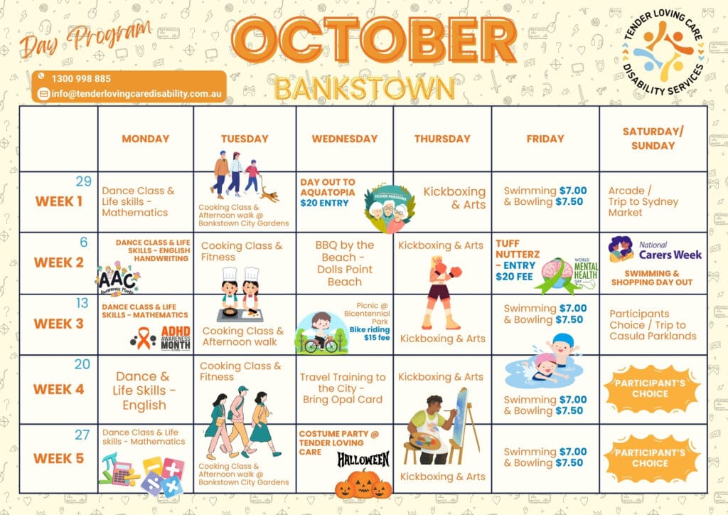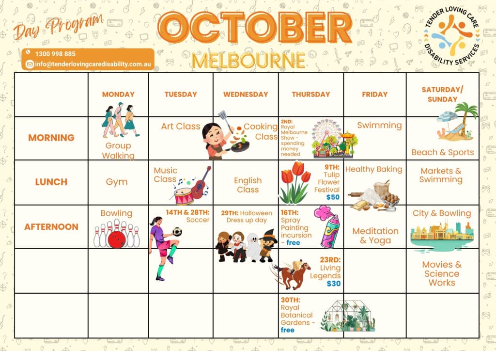 - Special Events: celebrating awareness days, themed group activities, or excursions linked to local events.
