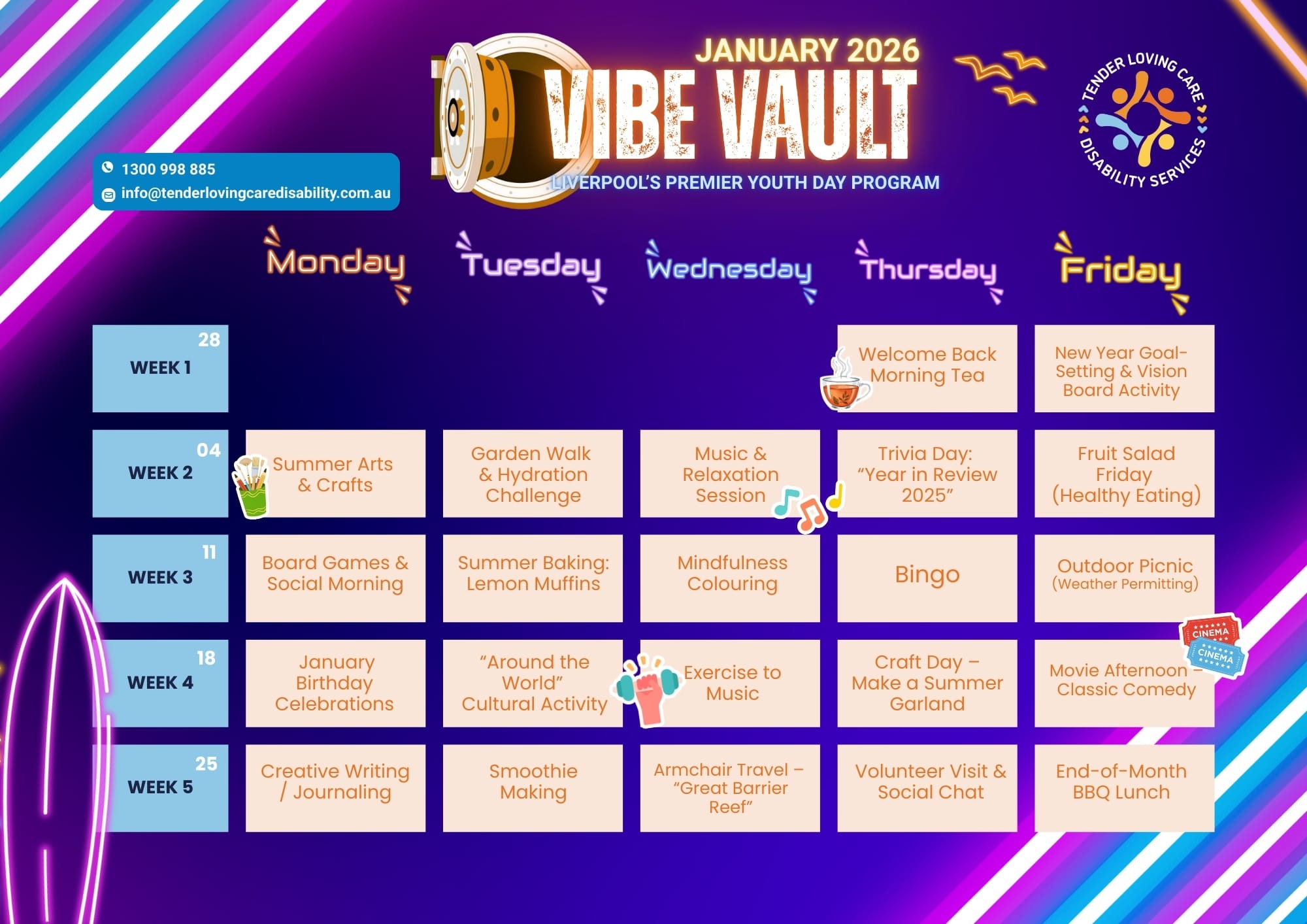Tender Loving Care offers flexible disability day programs across Sydney, Melbourne and Brisbane.